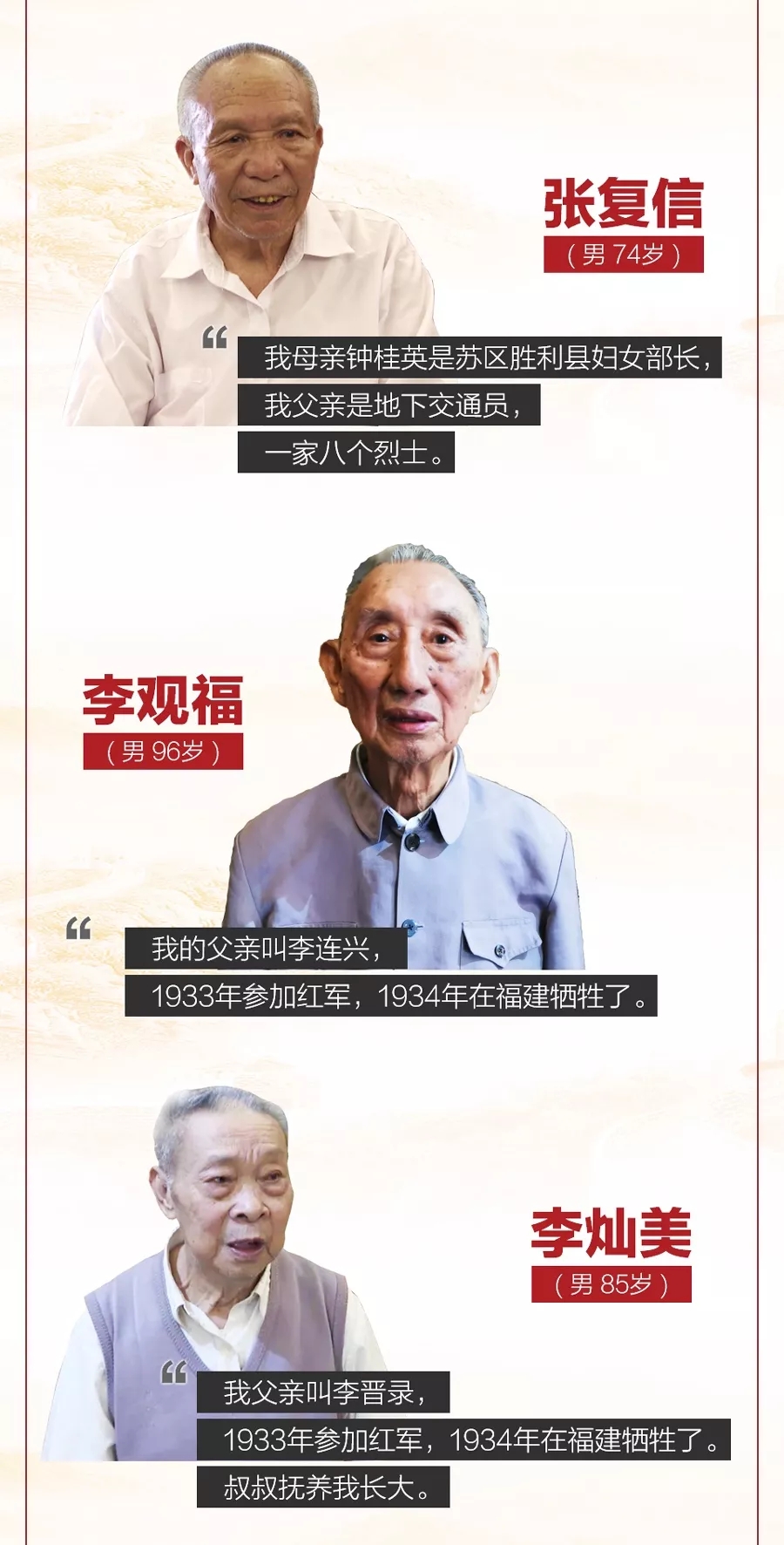 于都是中央苏区最后一块根据地,85年前,红军长征在这里集结出发。参观结束后,总书记亲切会见了9名特殊的代表,他们都是于都县的红军后代、革命烈士家属,每一个人的背后都有着令人动容的故事。