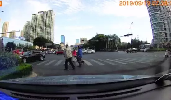 恰好被斑马线前一名等红灯车主的