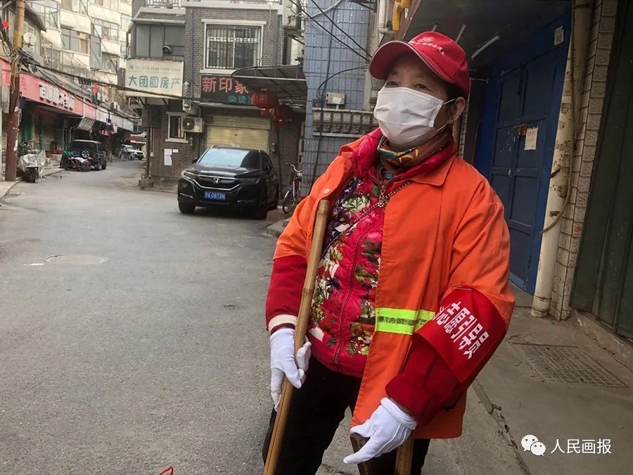 刘家菊女士,在黄鹤楼旁的青龙巷负责环卫工作。每天凌晨五点前就开始工作,她说虽然新冠肺炎疫情让人有些害怕,但环卫工作不能停。摄影 段崴/人民画报