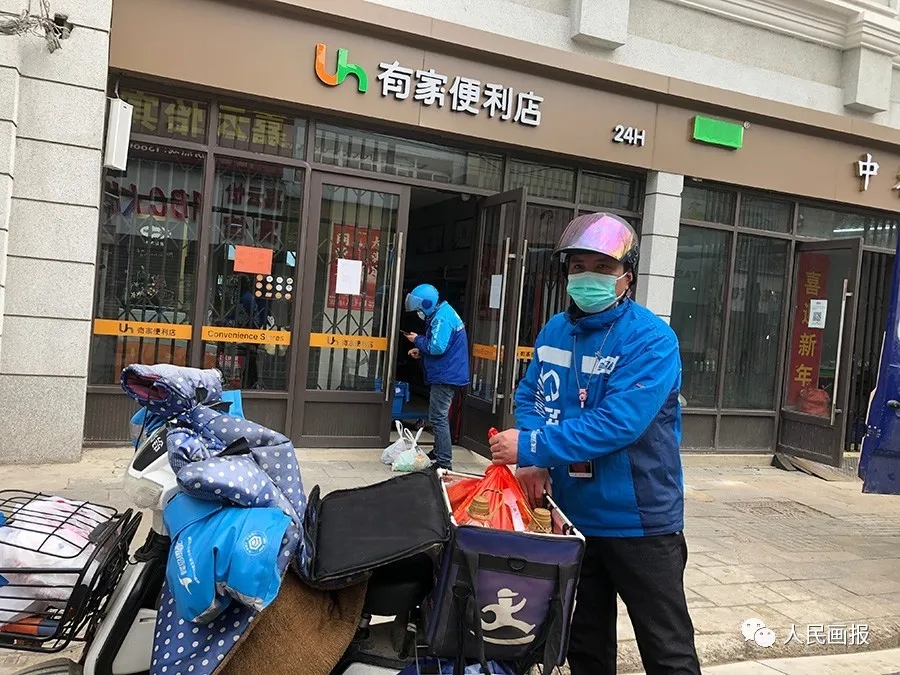 赵师傅是一名外卖员,他的工作时间从早上九点到晚上七八点,为附近不方便出门的居民送生活日用品,每天送货几十单。摄影 段崴/人民画报