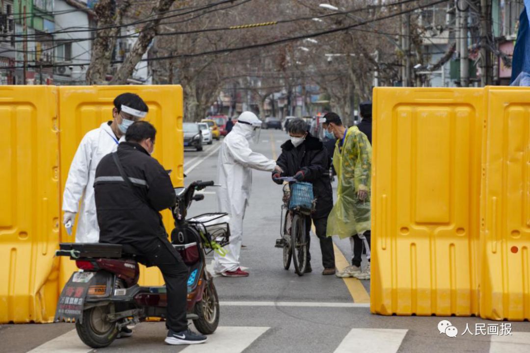 武汉各个住宅小区实行封闭管理,居民需凭借“出入证明”才能出入。摄影 陈建/人民画报
