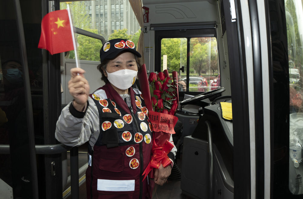 3月31日,李兰娟院士在驻地向人们告别。新华社记者 费茂华 摄