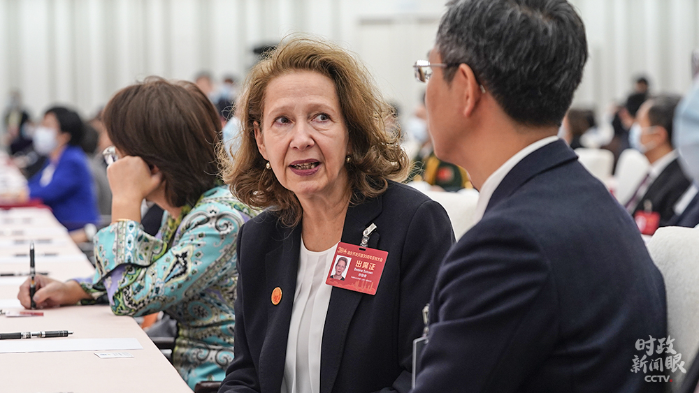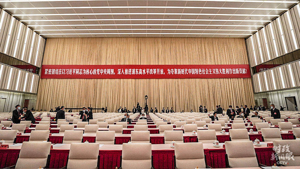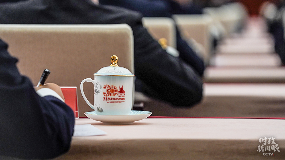 △会场的水杯上印有“浦东开发开放30周年”字样(总台国广记者李晋拍摄)