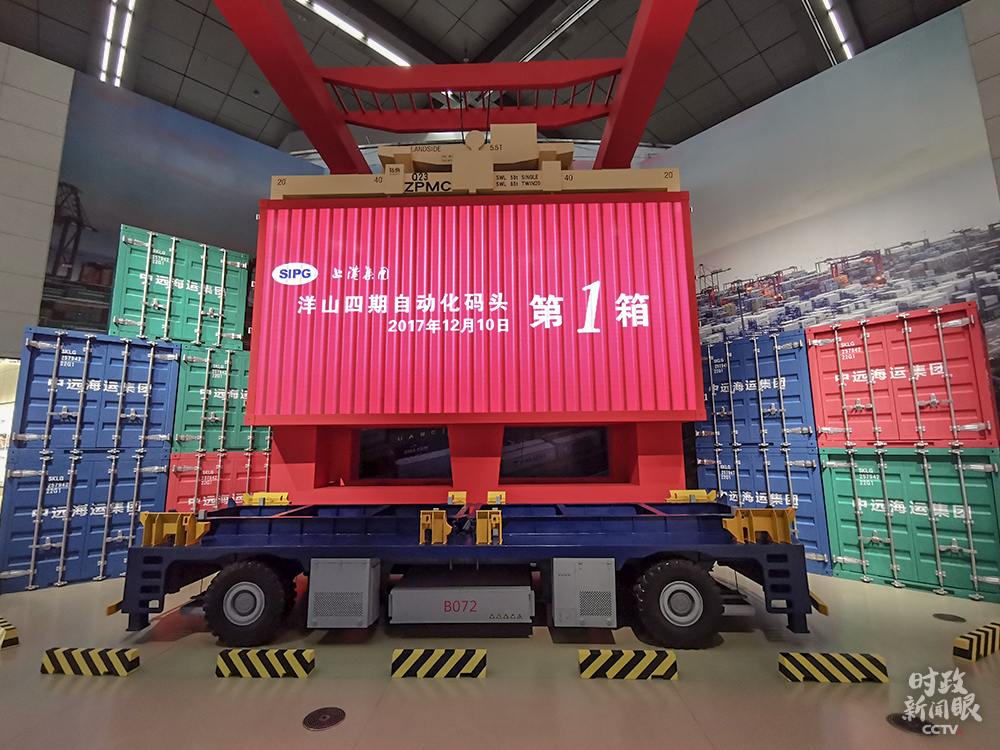 △“浦东开发开放30周年主题展”的洋山港展区(总台央视记者王冰拍摄)