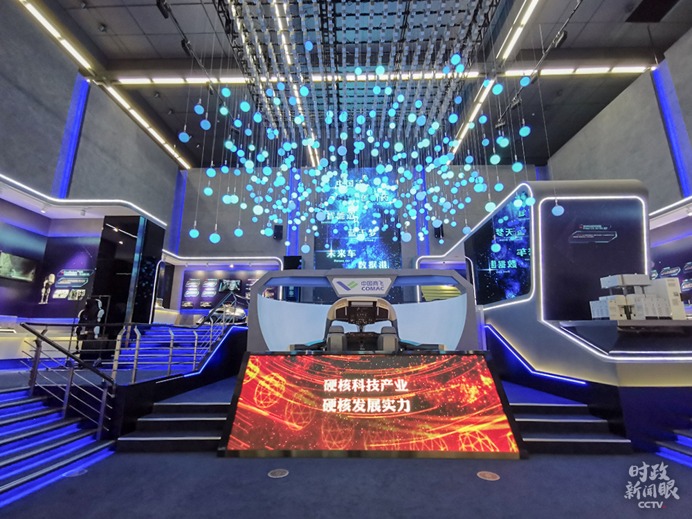 △中国商飞展区。2017年5月,我国首架具有完全自主知识产权的大型喷气式客机C919在浦东国际机场首飞成功,中国商飞公司是这架飞机的主制造商。(总台央视记者王冰拍摄)