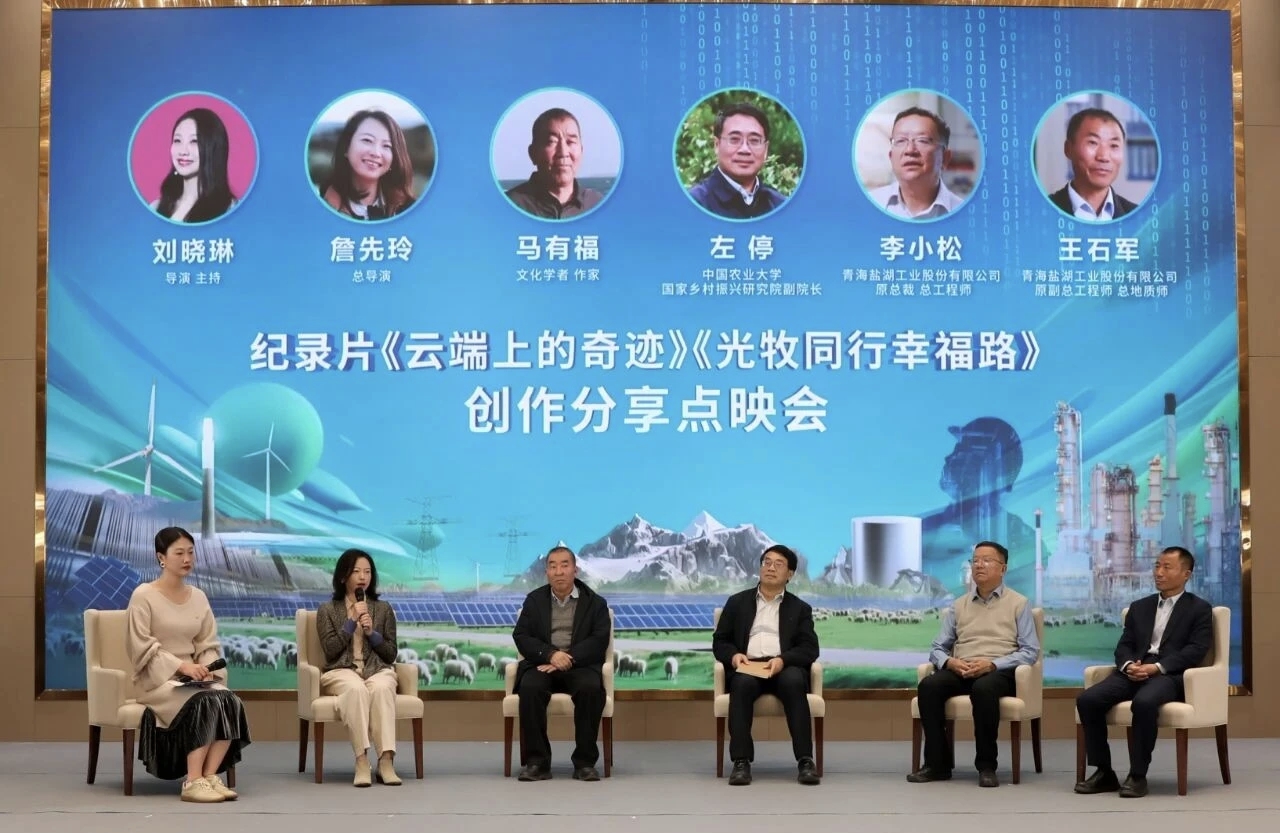 活动现场,《云端上的奇迹》总导演詹先玲介绍了纪录片创作基本情况,青海文化学者、作家马有福,中国农业大学国家乡村振兴研究院副院长左停,青海盐湖工业股份有限公司原总裁、总工程师李小松,青海盐湖工业股份有限公司原副总工程师、总地质师王石军围绕纪录片的文化内涵、叙事手法及其背后的产业联动、数字经济机遇等维度展开对话,为观众带来富有启发性的专业解读。同时,现场还组织观看了《云端上的奇迹》第一集《了不起的盐湖》精彩内容。