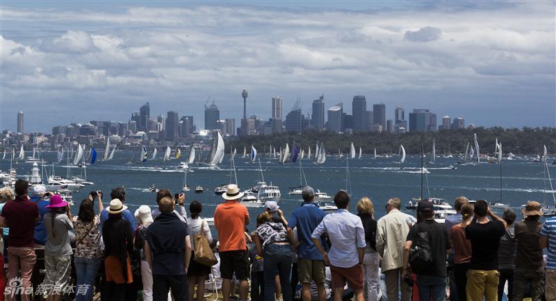 新浪体育讯 悉尼当地时间12月26日下午13时,第68届劳力士悉尼霍巴特帆船赛正式开赛。前一日,悉尼的天空还阴雨绵绵,天气预报对今天的天气估测也并不乐观。果然一大早,天空还并未晴朗,但是雨总算是停了。但到了中午,突然阳光明媚起来,温度也随之上升,但是港口的风速却并未减小,这就是帆船比赛最理想的天气状况。