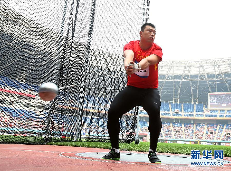 10月7日,中国选手万勇在比赛中。 当日,在第六届东亚运动会男子链球项目比赛中,中国选手万勇以69米26的成绩获得的冠军,韩国选手李尹喆以67米65的成绩获得亚军,中国选手齐大凯以67米01的成绩获得季军。 新华社记者廖宇杰摄