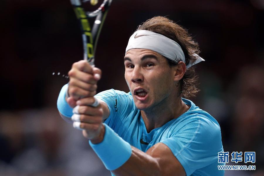 10月31日,纳达尔在比赛中回球。当日,在2013年ATP网球巴黎大师赛八分之一决赛中,西班牙选手纳达尔以2比0战胜波兰选手亚诺维奇,晋级八强。 新华社/路透