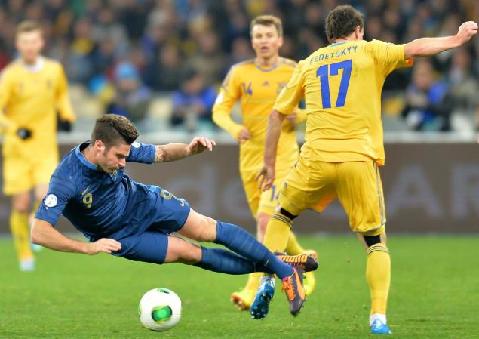北京时间11月16日(周六)凌晨03点45分,2014年巴西世界杯预选赛欧洲区附加赛第一回合的一场焦点战,法国国家队做客基辅奥林匹克体育场0比2负于乌克兰国家队,出线形势陷入到巨大危机之中,有可能无缘2014年世界杯决赛圈。乌克兰在下半场由佐祖尔亚和亚尔莫连科先后打入两球,比赛结束前科斯切尔尼和库彻尔先后被被红牌罚下。