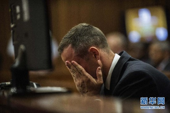 5月8日,皮斯托瑞斯在庭审现场掩面。当日,南非“刀锋战士”皮斯托瑞斯涉嫌杀害女友案在比勒陀利亚的北豪滕高等法院法庭继续开庭审理。 新华社/路透