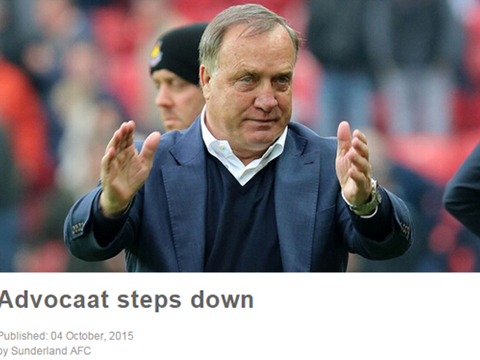 北京时间今天,英超球队桑德兰在其官网上宣布,球队的荷兰籍主帅艾德沃卡特正式宣布辞职,他也是本赛季英超的第一位下课主帅。艾德沃卡特是在今年3月份接替成绩糟糕的波耶特成为桑德兰的主帅,随后这位荷兰人带领当时还排名第17,且有着非常大的降级可能的桑德兰,在最后9场比赛中取得了3胜3平3负的成绩,这关键的12分也让球队最终成功上岸。不过非常可惜,虽然他今年6月份才和球队签订了一份正式的一年合同,但仅仅4个月之后,他就宣布辞职。