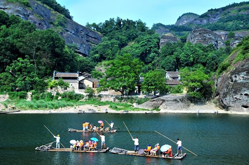 泸溪河:发源于福建光泽原始森林,沿途经过云台山、象山、圣井山、上清镇、正一观、仙水岩、马祖岩,汇入信江,进鄱阳湖,注入长江,全长286公里,在景区流经长43公里。沿途植被良好,两岸茂林修竹,河水清澈纯净,过滩呈白,遇潭现绿,没有受到污染,达到国家饮用水标准。泸溪河两岸奇峰怪石很多,青山密林,流泉瀑布,犹如仙境,最典型的有十大美景,乘船筏揽泸溪河之胜,就如置身在山水画廊之中,成为龙虎山旅游三绝之一。宋代文学家晁补之游览后写下“行尽江南最远山,却寻干越上溪滩”。