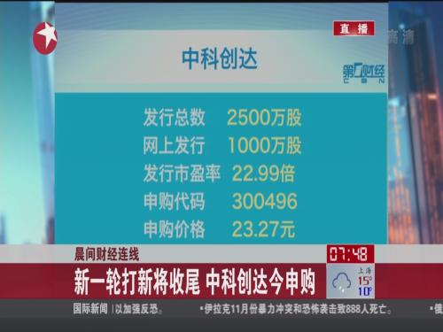 晨间财经连线:新一轮打新将收尾 中科创达今申购