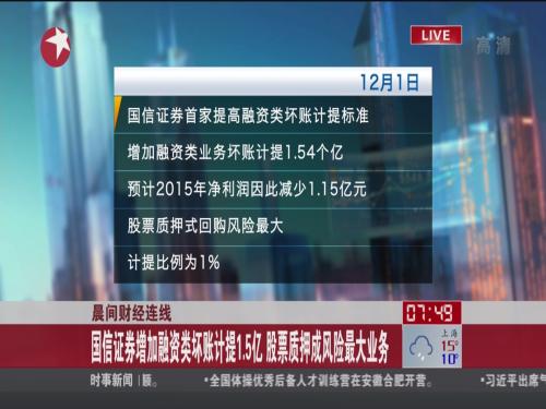 晨间财经连线:国信证券增加融资类坏账计提1.5亿 股票质押成风险最大业务