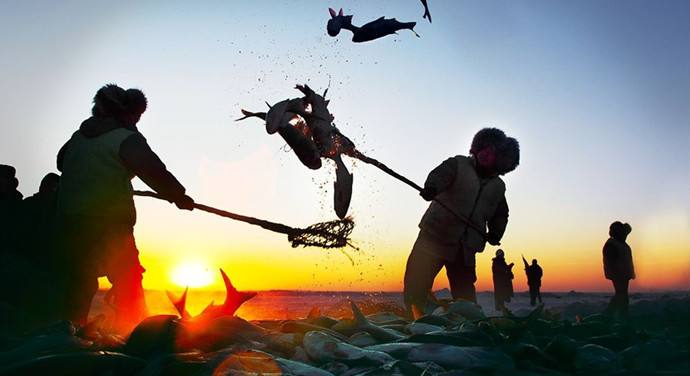 吉林查干湖冬捕开网 再现千年“渔猎文化”