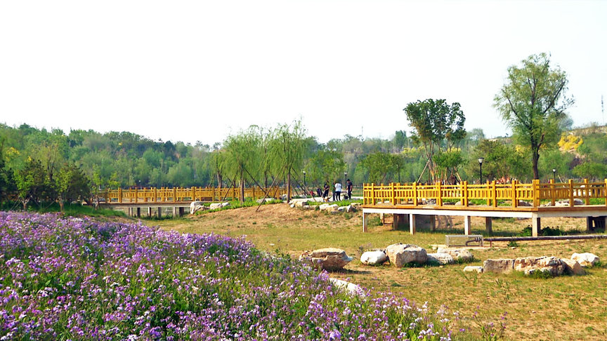 记者看到,公园内栽植了圆柏、油松、白皮松、国槐、元宝枫等高大乡土乔木,以及草坪和花灌木,形成立体的植被生态体系,调节生态平衡、改善环境质量、美化城市景观。目前园内各种树木和花卉总量达5.2万株,未来还将配有4万平方米的水面,形成立体的植被生态体系,市民身在园内可以感受到被“绿色”环抱的舒爽。