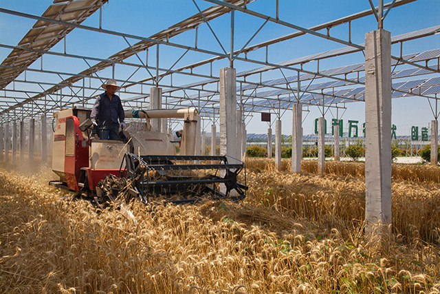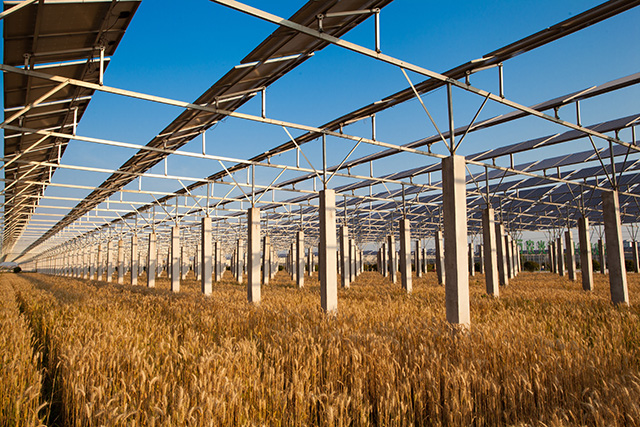中利集团“智能光伏嫁接科技农业”全球首创,“智能”“科技”两大标签熠熠生辉。光伏嫁接农业,为的是同一块土地上,让庄稼长得更好,让太阳赋予价值,放眼全球,只有中利模式做到了。成功背后,是锐意创新的勇气、智慧和担当。以问题为导向,中利集团的创新从探索光伏建设与农业生产光照、机械化耕作和谐共生开始。经过一次次精密设计、计算、实验,中利集团找到了最佳解决方案:以砼水泥桩+高强度铝合金作为光伏底座支架,将高度抬到4米以上、桩距扩大到10米宽度,采用高效率单板光伏组件以特定角度安装。这一方案,实现了光伏组阵发电效率、土地的光照率和抗风能力等的最优组合,既能满足农业生产机械化作业需要,又能保证每棵农作物获得75%以上太阳光射照,而且可确保20年以上的抗腐蚀能力,维护成本极低,完全适用于水稻、小麦、玉米、棉花等大田作物。