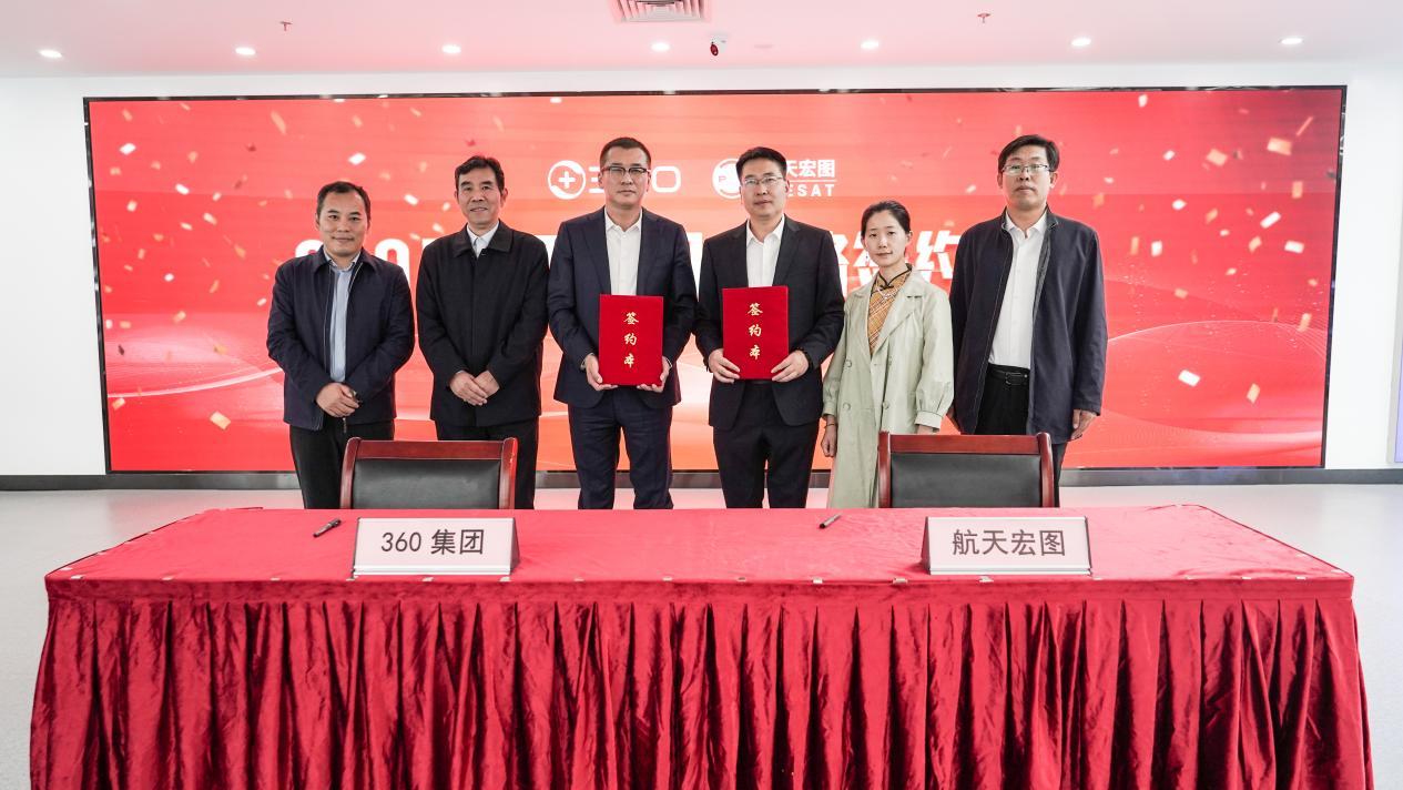 360集团副总裁、生态与战略合作中心负责人刘兆辉与航天宏图高级副总裁刘东升签署战略合作协议