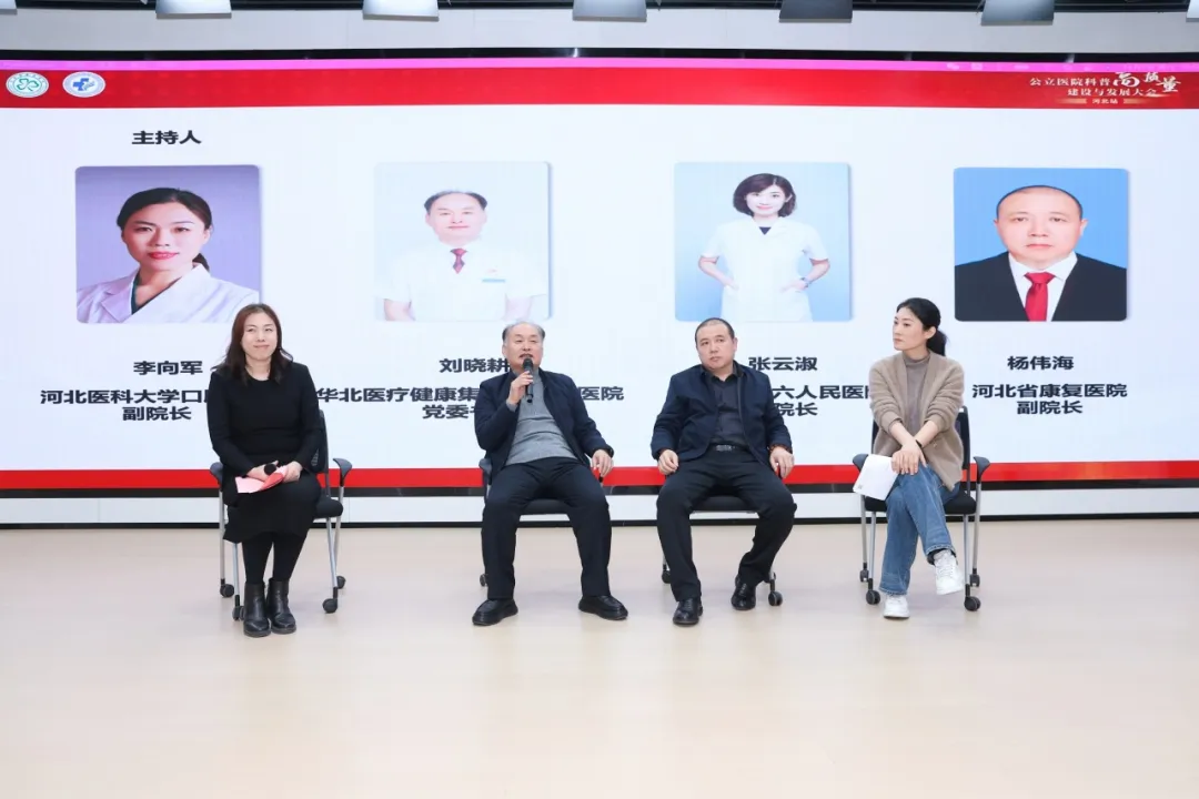 高端对话由华北医疗健康集团峰峰总医院党委书记刘晓耕、河北省第六人民医院副院长张云淑、河北省康复医院副院长杨伟海参与交流。河北医科大学口腔医院副院长李向军主持。