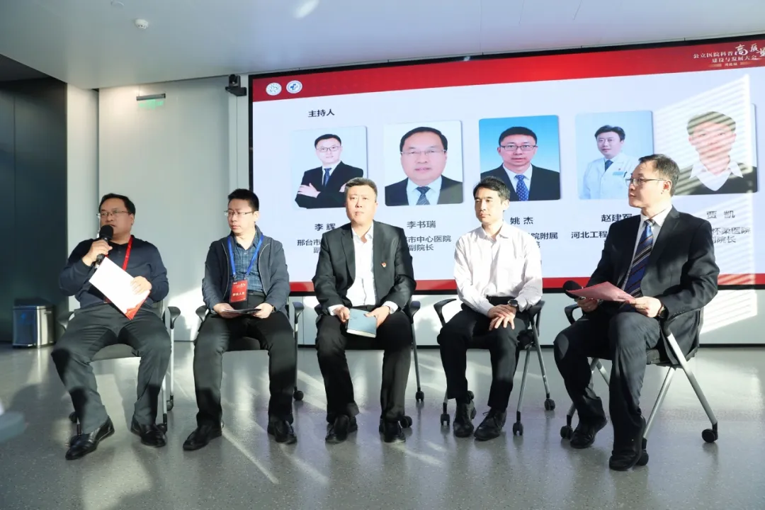 高端对话由邯郸市中心医院副院长李书瑞、河北北方学院附属第一医院副院长姚杰、河北工程大学附属医院副院长赵建军、北京怀柔医院副院长贾凯参与交流。邢台市人民医院副院长李辉主持。