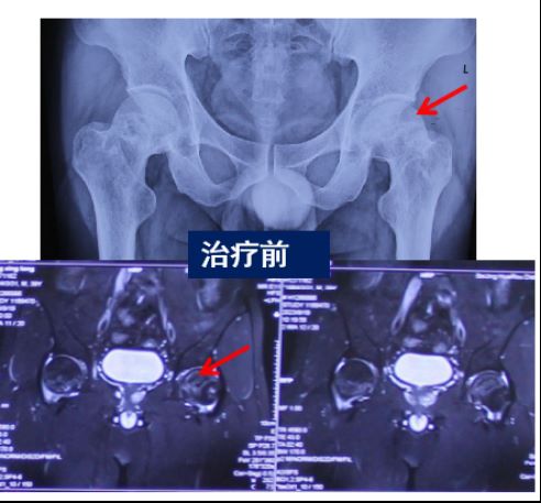 术前X片及MRI见左侧股骨头ARCOⅡ期,JIC C2型,坏死范围大,外侧壁无保留,塌陷风险极高,予行外科脱位病灶清除打压植骨术