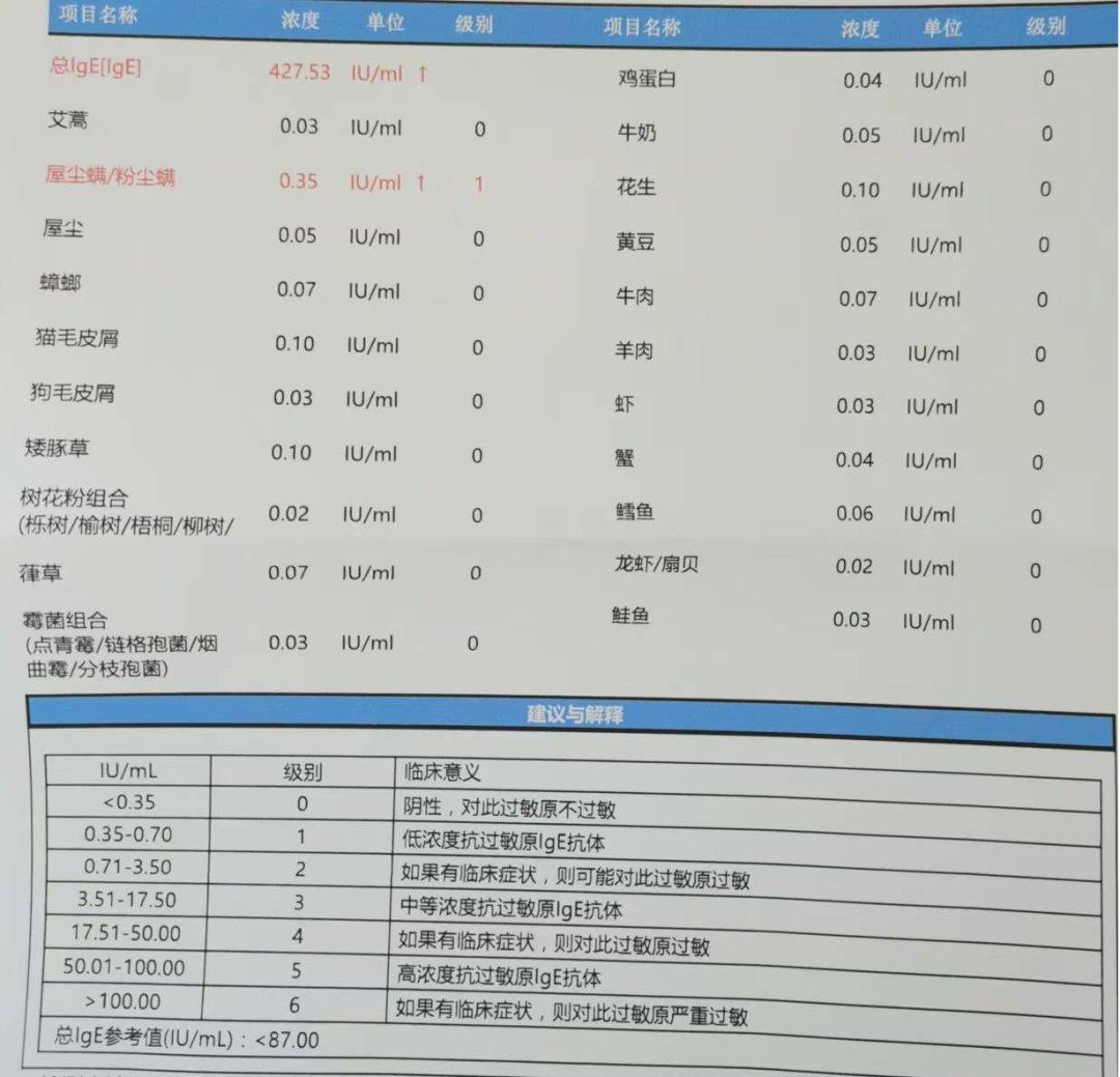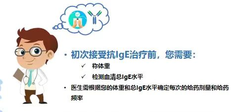 (2)IgE介导的过敏:血清IgE水平30-1500IU/mL(剂量根据体重和IgE水平计算),且对特定过敏原(如尘螨、花粉)敏感。