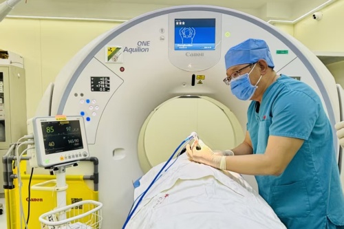 穿刺那天,张大爷心里既紧张又充满期待。“我这病折磨我好久了,就盼着能早点弄清楚是怎么回事,好赶紧治疗。”手术台上,CT实时引导下,穿刺针如游丝般沿预定轨迹缓缓推进。监测屏上,针尖与血管壁的间距仅剩发丝般细微,操作室内鸦雀无声。“到位!”随着于明川一声轻呼,患者病理组织被精准捕获。全程仅30分钟,一场惊心动魄的“战斗”悄然结束。