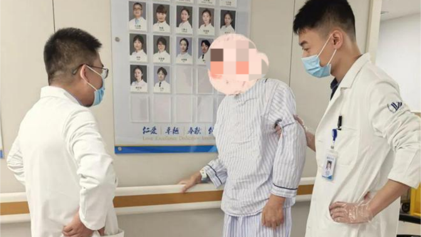 陪同的家属激动地拿出手机,拍摄了孙爷爷的“第一步”发到了家庭群:“能走路了,太厉害了!”