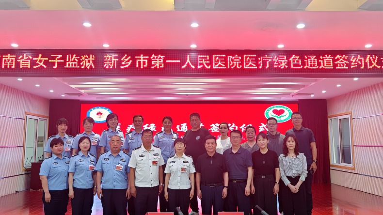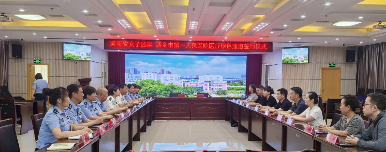 2025年5月15日下午,新乡市第一人民医院与河南省女子监狱举行医疗“绿色通道”签约仪式。河南省女子监狱监狱长张玉秀、政委步新亮等相关领导,新乡市卫健委副主任陈银亭,新乡市第一人民医院副院长苏世奇、院长助理刘茜及相关部门负责人共同出席签约仪式。