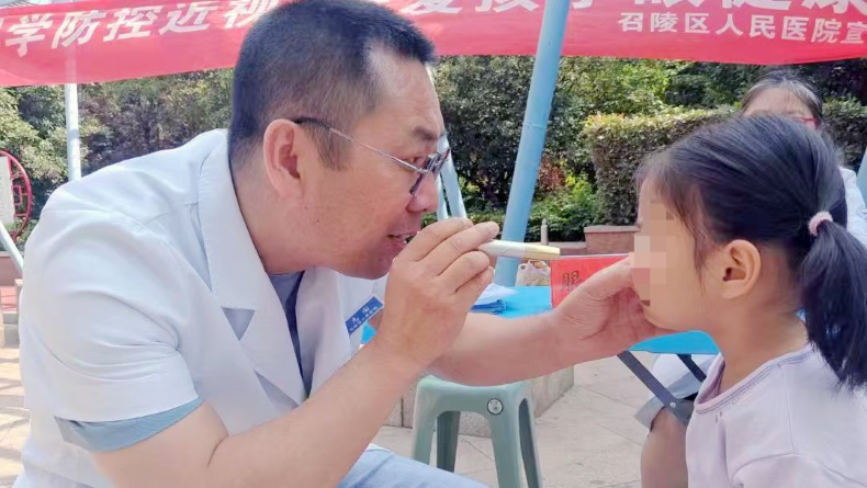 2025年6月6日,漯河市召陵区人民医院眼科,医生们开展了一场特别的“爱眼日”活动。身着白大褂的医生正温柔地给孩子们检查眼睛,就像在玩“看看小眼睛有没有生病”的游戏一样轻松。