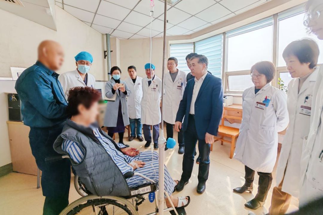 ▲河北医科大学第三医院侯志勇院长查看患者病情