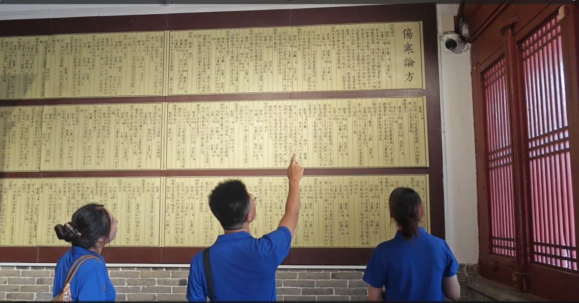 7月17日下午,团队来到南阳医圣祠,参观了仲景堂、标本馆,观摩历代中医器具古籍,回溯了医圣张仲景“坐堂行医”的济世情怀与《伤寒杂病论》的伟大创举。在参观过程中,同学们特别关注了总书记曾驻足观看的《伤寒杂病论》展区,对其中蕴含的“辨证施治”思想有了更深理解。