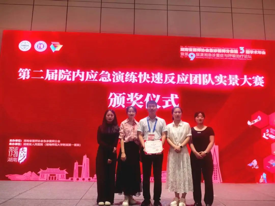 近日,开封市人民医院急诊科在“湖南省医师协会急诊医师分会第三届学术年会暨第九届潇湘急诊重症与呼吸治疗论坛”第二届院内应急演练快速反应团队实景大赛中表现出色,荣获二等奖。此次盛会汇聚了众多国内急诊领域的权威专家与精英团队,是展示急诊医学前沿技术与实战能力的重要平台。