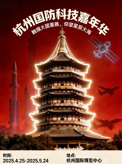 领秀创展国防科技嘉年华(杭州站)将于4月25日至5月24日登陆杭州国际博览中心。本次活动由中国国防科技工业文化交流协会担任指导单位。展览横跨五一黄金周,将以沉浸式、互动式的呈现方式,为公众带来一场兼具知识深度与精神感召力的国防科普体验,让大国重器走出屏幕与课本,成为可触摸、可读懂的鲜活国防教育教材。
